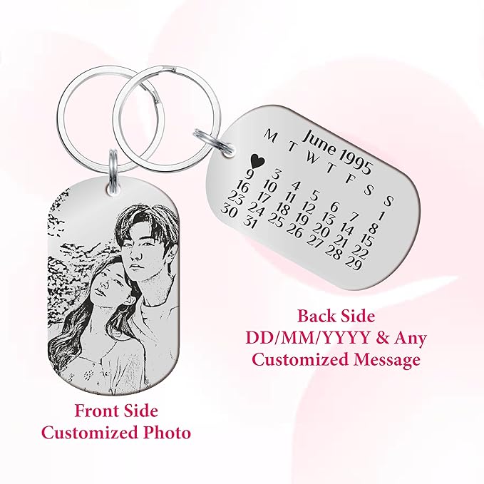 Customised Photo Engraved Keychain For Loved ones | Best For Gift | Valentine’s Day Gift, Birthday Gift | Silver
