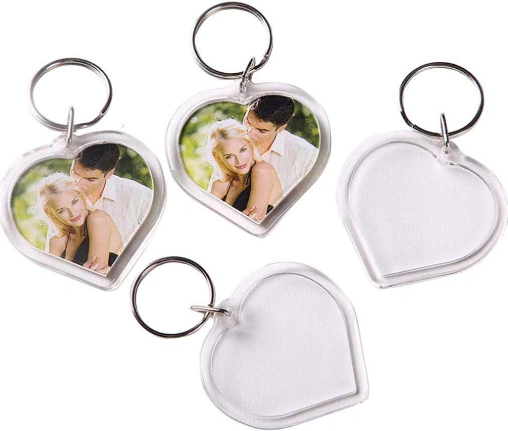 heart shape10set Acrylic Photo Snap- in Key Chain Transparent Clear Acrylic Blank Shape Picture Frame Keychain with Split Ring for Women and Men